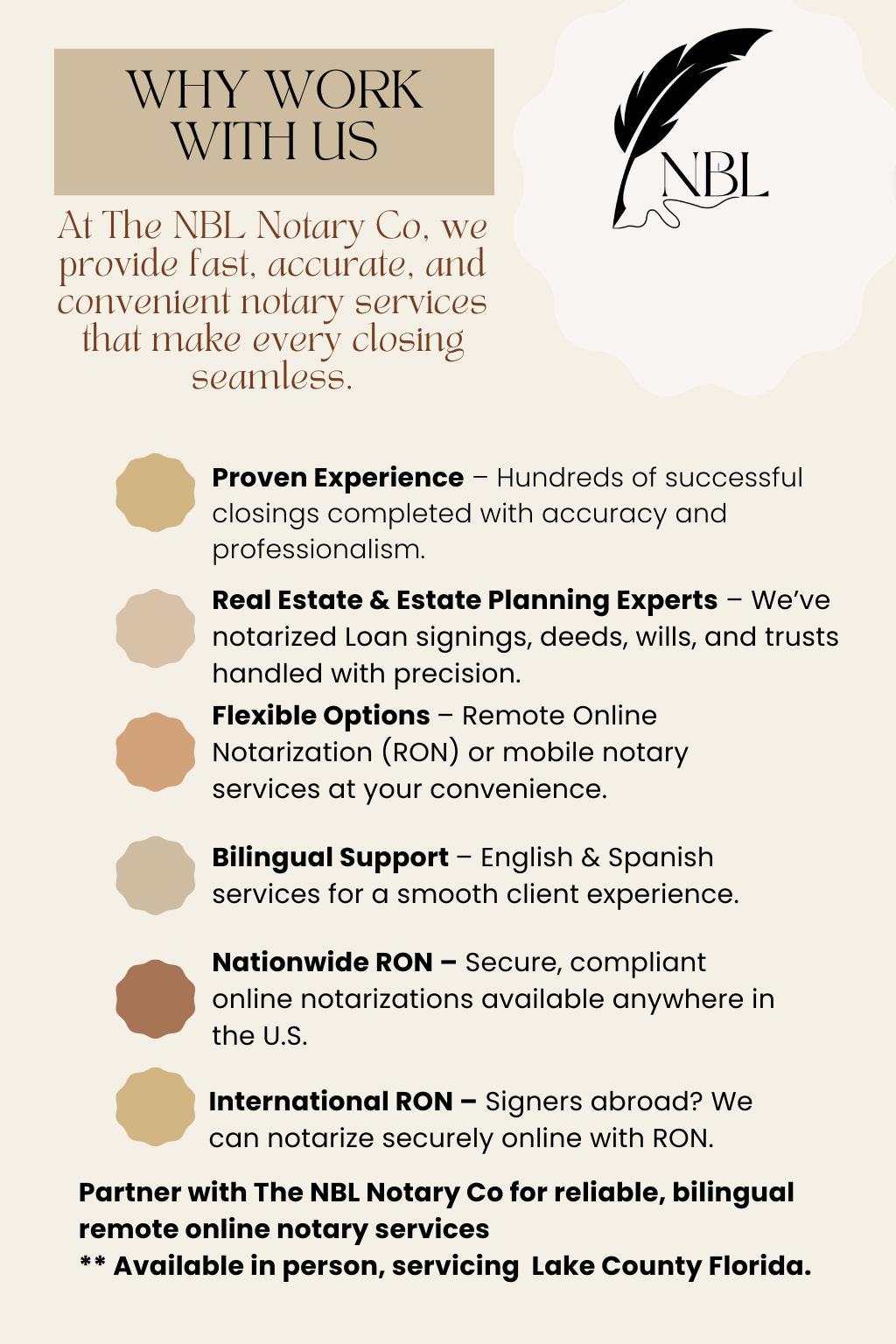 Some lenders may still require in-person signings for loan packages. We’ll help verify lender and county acceptance before scheduling.